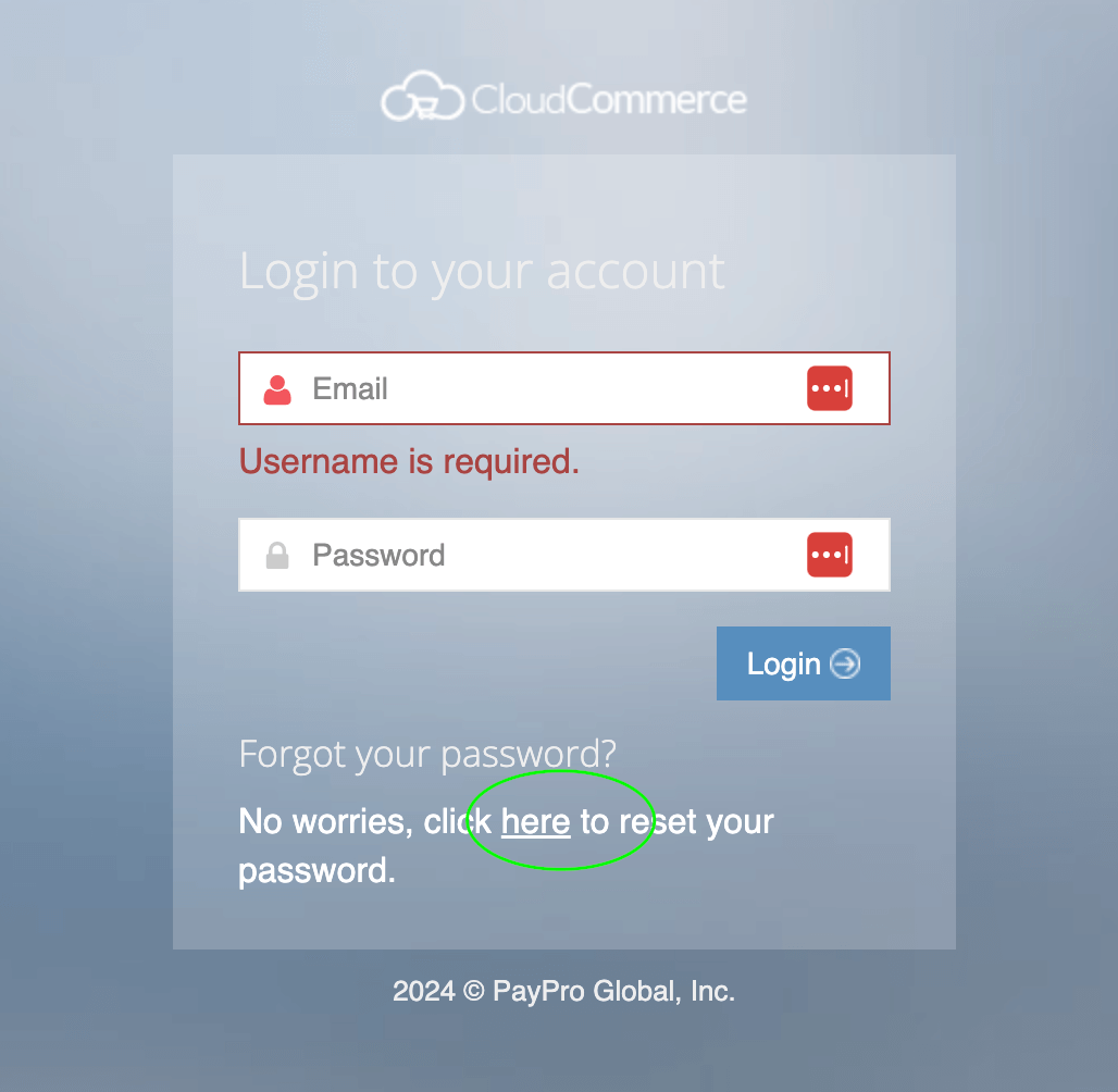 - Visit the Login Page: Go to the PayPro Global customer login page at https://cc.payproglobal.com/Customer.