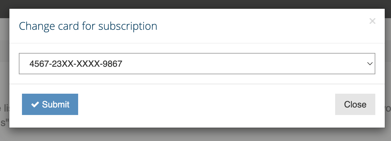 - Choose the new card from the list of saved cards to update your payment information for that subscription.
