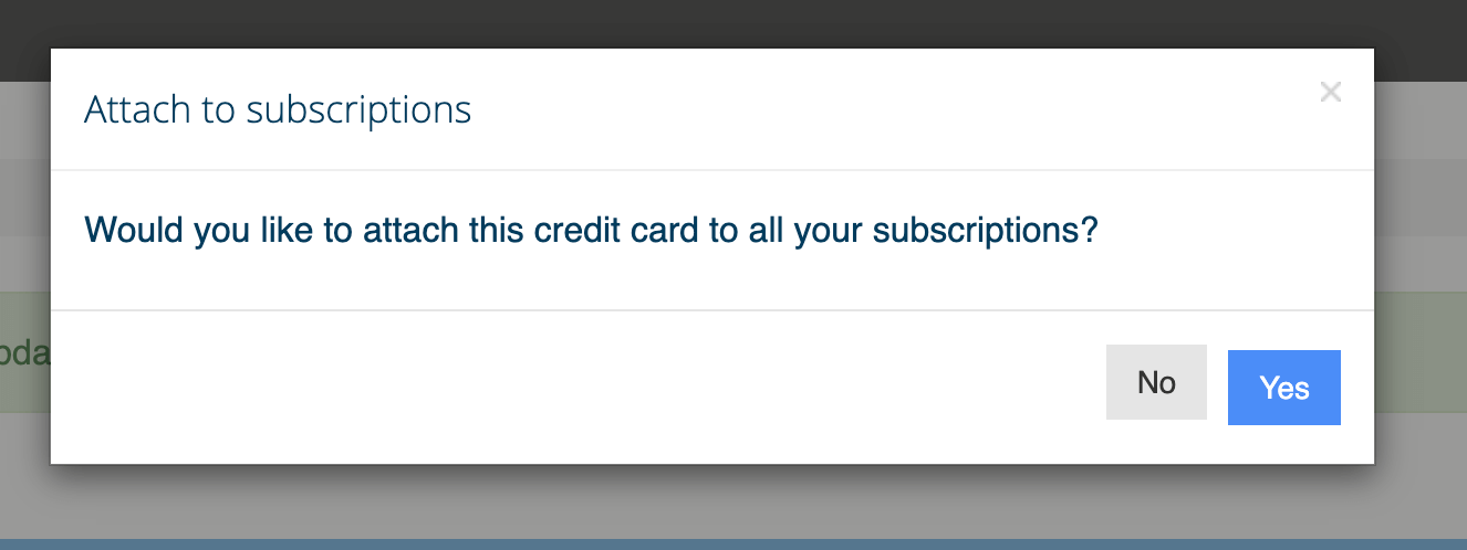 - You will be prompted to attach the card immediately by selecting "Yes." This will make the new card your primary payment method. If you prefer to do this manually, skip to the next step.