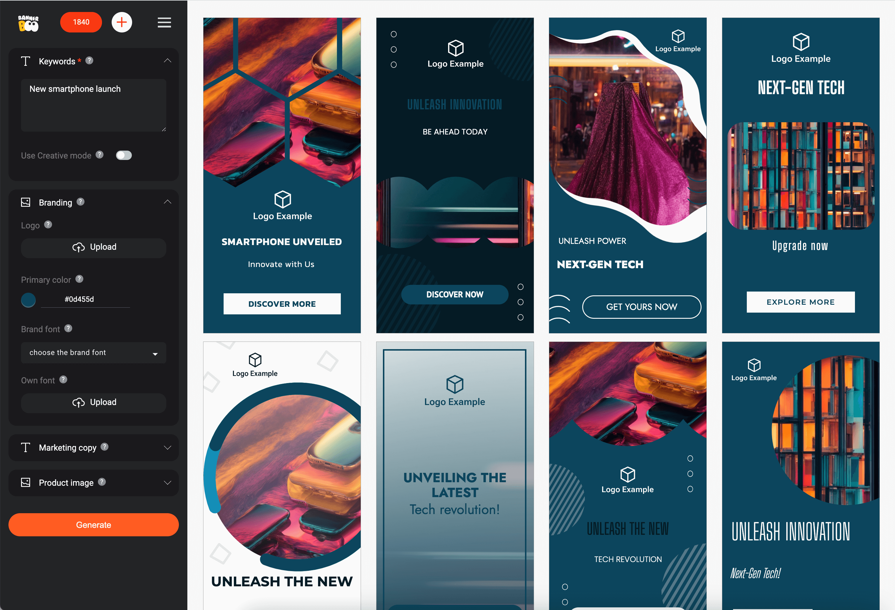 - Each banner variation created by the AI Banner Generator is available for further customization in the banner editor.