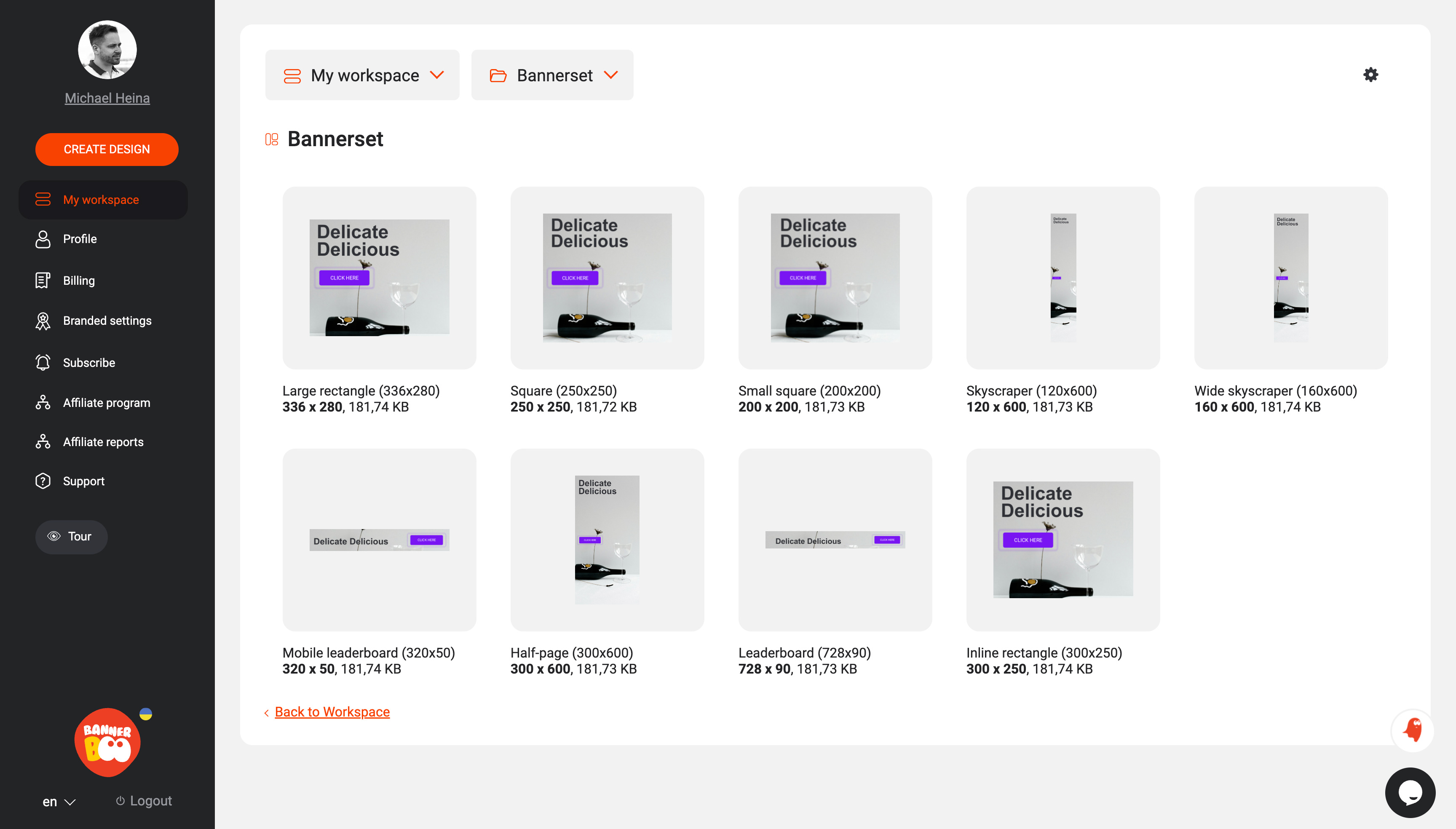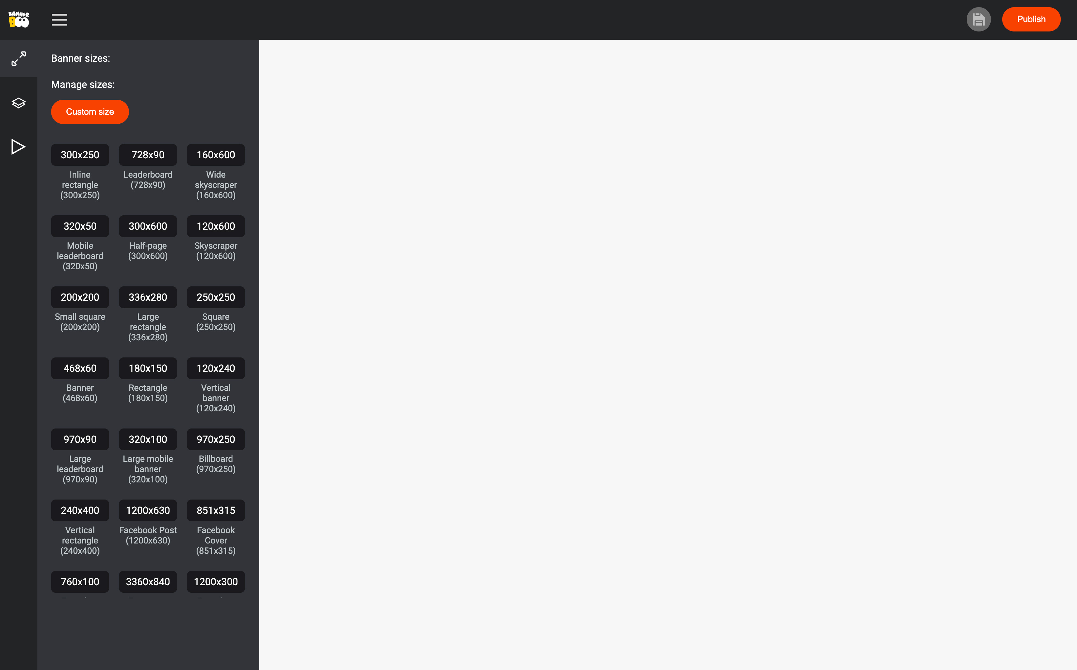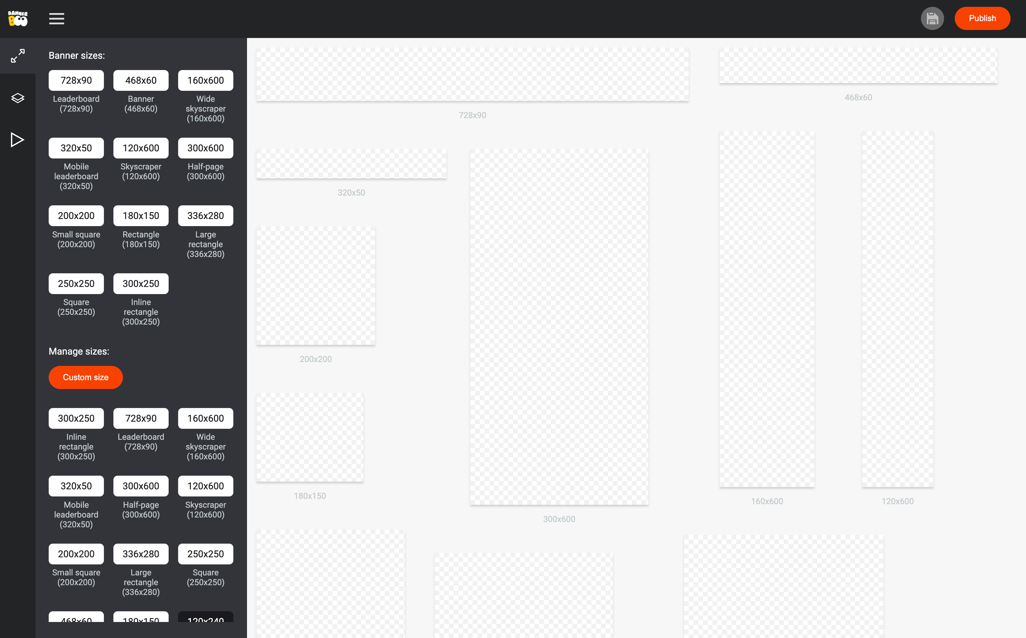 In the generator, select the banner sizes you want to create for your campaign.