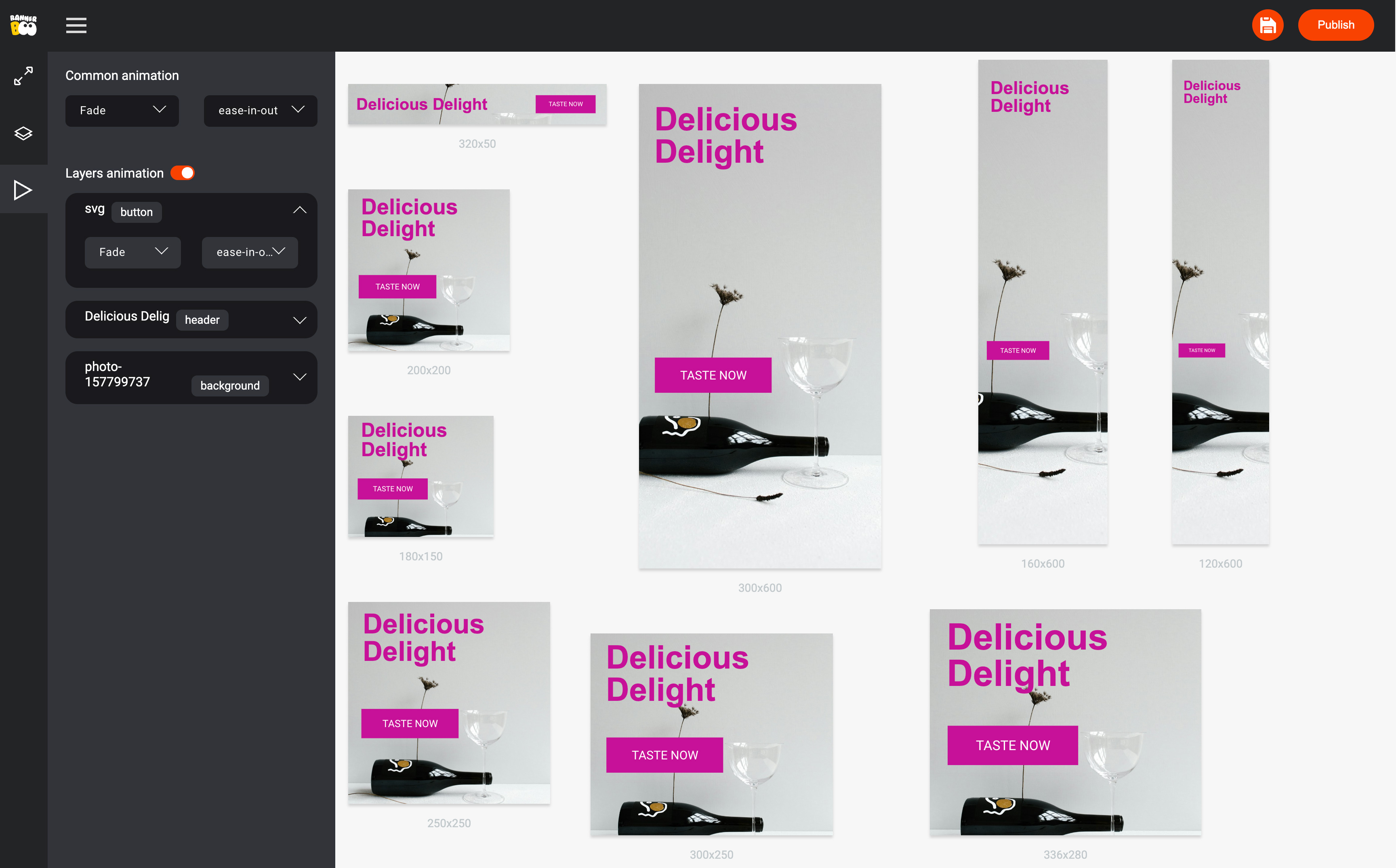 Now, bring your banners to life! Choose an animation type for your elements, similar to Smart Animation in our regular editor.