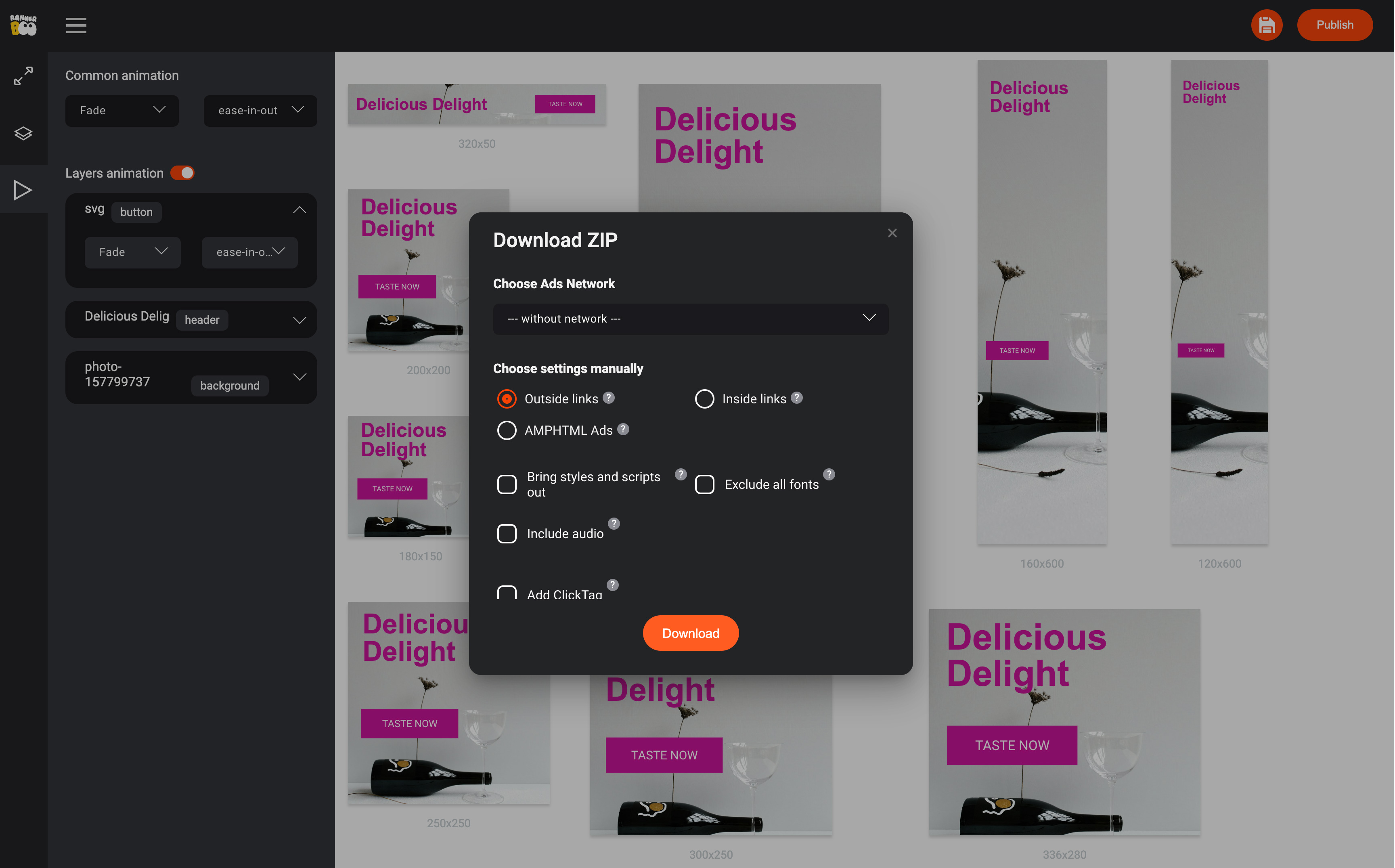 Configure your download settings, and you’ll receive an archive containing all banner sizes.Edit Your Banners